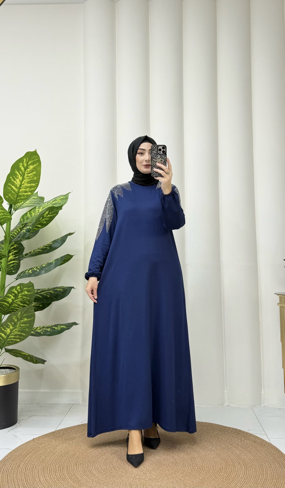 Petra pileli elbise Siyah