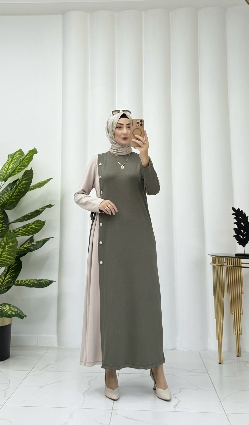 Petra pileli elbise Haki